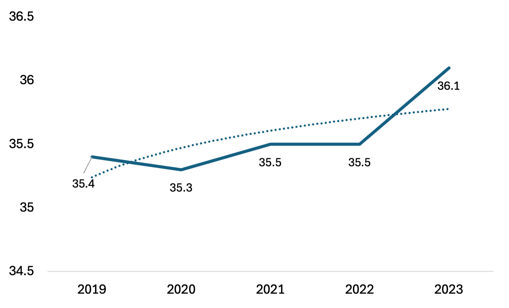 The reduced purchasing power has been raised by many by citing several recent and contemporary indicators within the last year, including the decline in value-added tax, lower consumption growth rate and retail and durable goods sales, lower propensity to saving, and lower level of inflation and deflation happening in the country, which reflects the changes in the short term and hence are translated by some as an anomaly. However, the reduced purchasing power might have resulted from a fundamental and more structural issue in the economy. According to the theory, purchasing power can be reflected by the ratio of wages to price level (P), reflecting the purchasing power of individuals’ earnings ((W/P). This implies that when the price level increases (inflation rate) higher than wage growth, individuals’ purchasing power will erode. Figure 5 indicates that the inflation rate in 2020, 2021, and 2023 was substantially larger than the growth in average wages, which might be attributed to the lowered purchasing power.