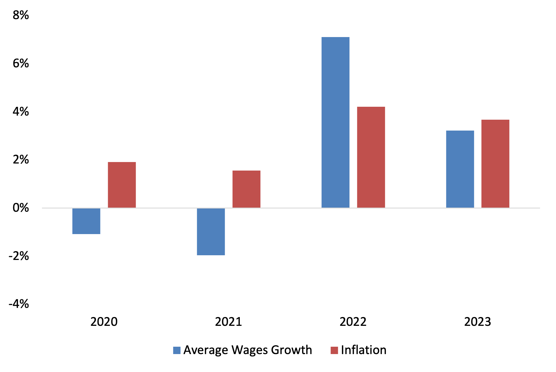 Figure 5. Indonesian Annual Average Wages Growth and Inflation Rate. Source: International Labour Organization, World Development Indicators